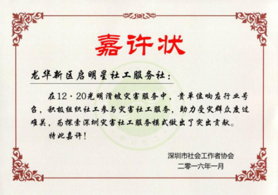 深圳市社会工作者协会嘉许状