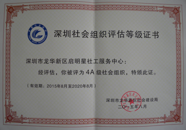 深圳市4A级社会组织等级证书