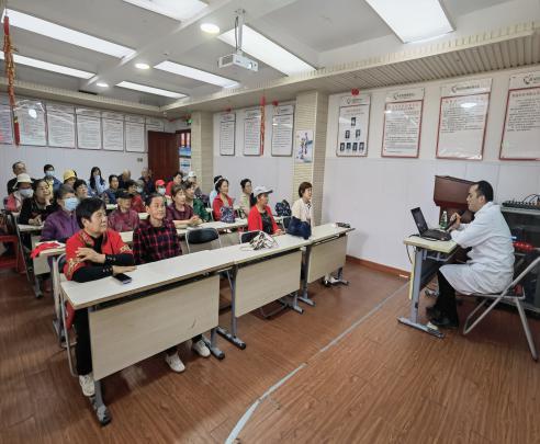 讲座上,医生以图文并茂的PPT形式,深入浅出地讲解了中医养生的核心理念——“天人合一”,强调人应顺应自然规律,根据四季变化调整养生策略,从而达到预防疾病、增强体质的目的。随后,医生结合中医食疗、经络按摩、有氧运动、情志调节等多方面内容,详细讲解了春、夏、秋、冬四季的养生要点,让居民深刻体会到中医养生的博大精深。