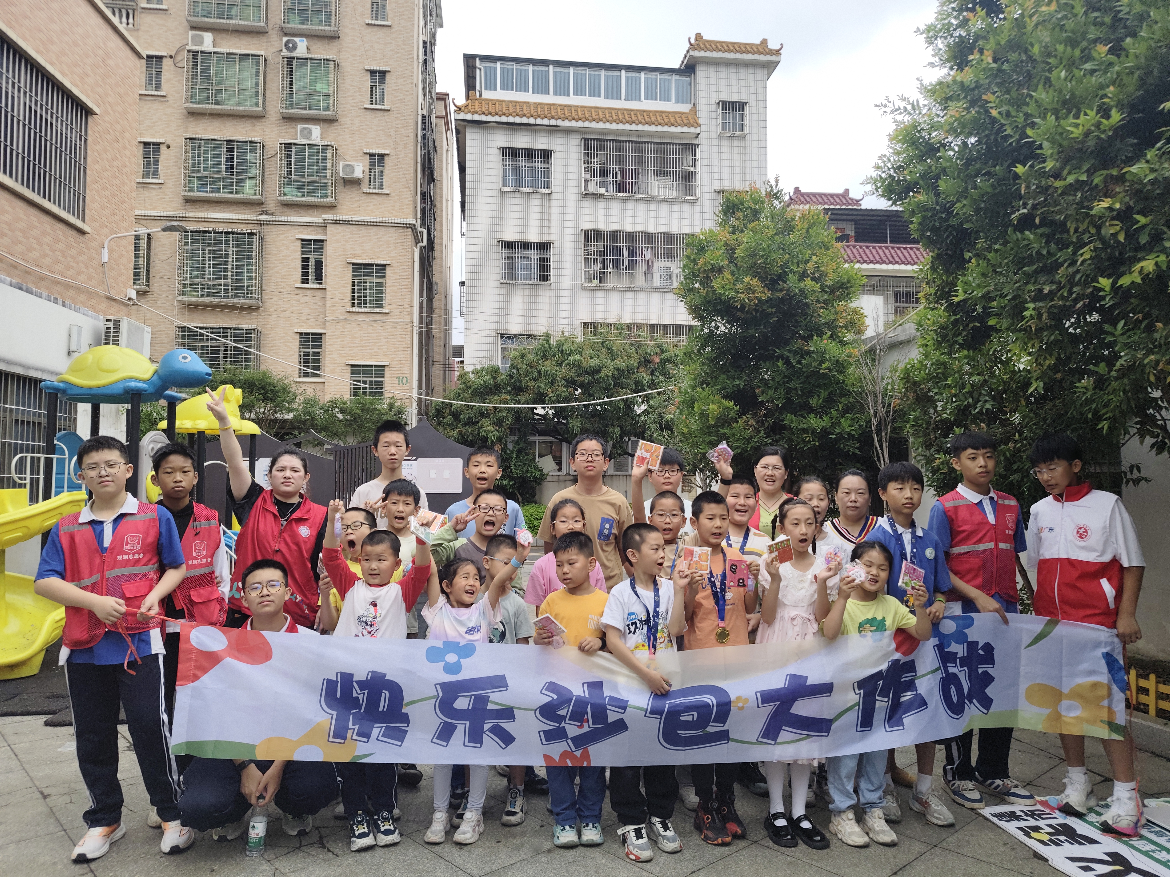 近日,龙华区观澜街道君子布社区田心小区党群服务V站开展儿童沙包户外拓展活动,创意关卡将挑战与趣味并存,20名小朋友们在欢声笑语中展开了一场充满挑战与乐趣的沙包大比拼。