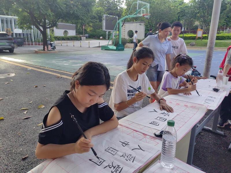 活动还特别邀请了资深书法老师龙老师进行现场指导。龙老师首先向孩子们示范了正确的握笔姿势、运笔方法和书写要点。在他的悉心指导下,孩子们提笔蘸墨,认真地在纸上书写下“中国心”“为人民服务”“中国人”等饱含爱国深情的字样。一笔一画间,不仅学习了传统书法技艺,更将拳拳爱国之心融入墨香之中。