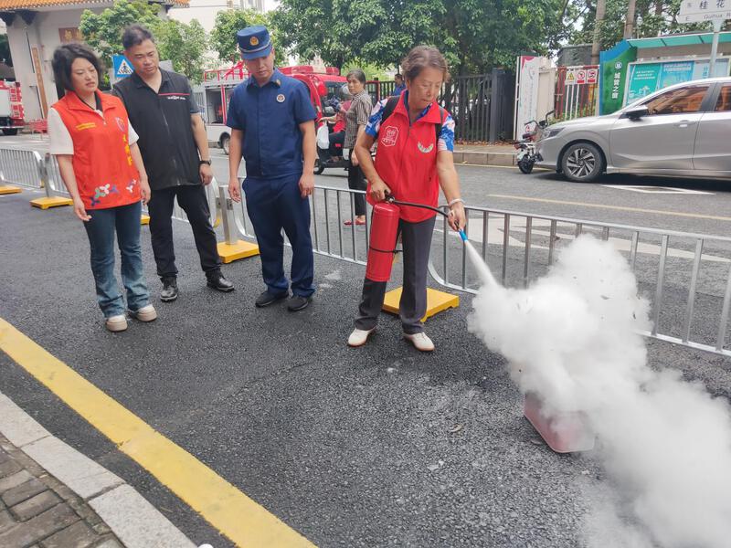 在消防安全培训环节,专业人员采取“讲解+实操”的互动教学方式,系统细致地讲解了干粉灭火器的正确使用方法。参训人员积极响应,依次进行灭火器实操演练。在模拟浓烟环境中,大家迅速运用所学知识,有序开展应急疏散逃生演练。整个过程紧张高效,充分体现了参训人员对消防安全知识的理解与应用能力。一位志愿者在演练后感慨:“之前只知道灭火器要拔插销,通过实际操作才明白,站位和喷射角度同样关键!”