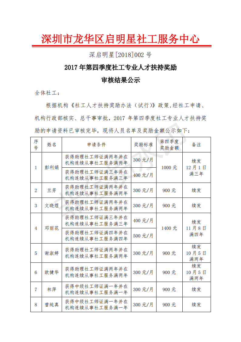 深启明星[2018]002号-2017年第4季度人才扶持奖励审核结果公示