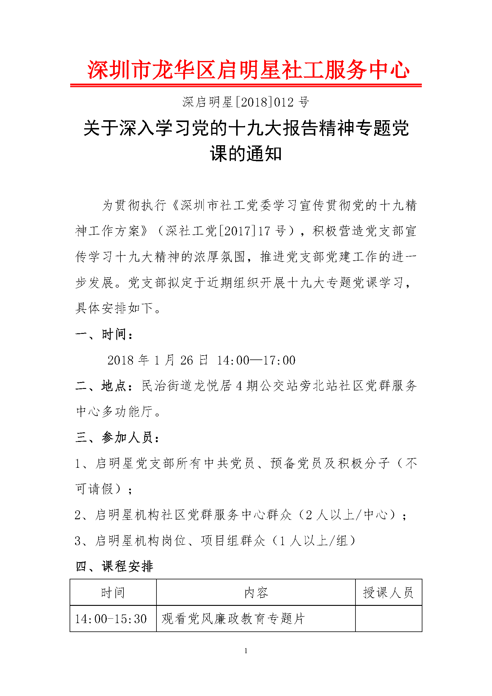 深启明星[2018]012号-关于深入宣传学习党的十九大报告精神专题党课的通知