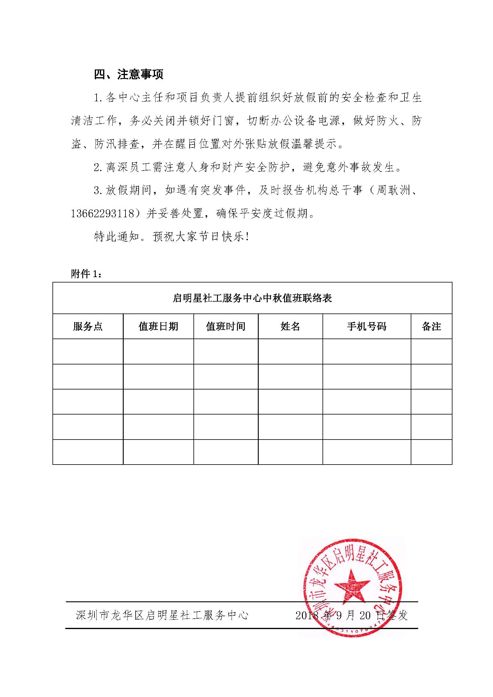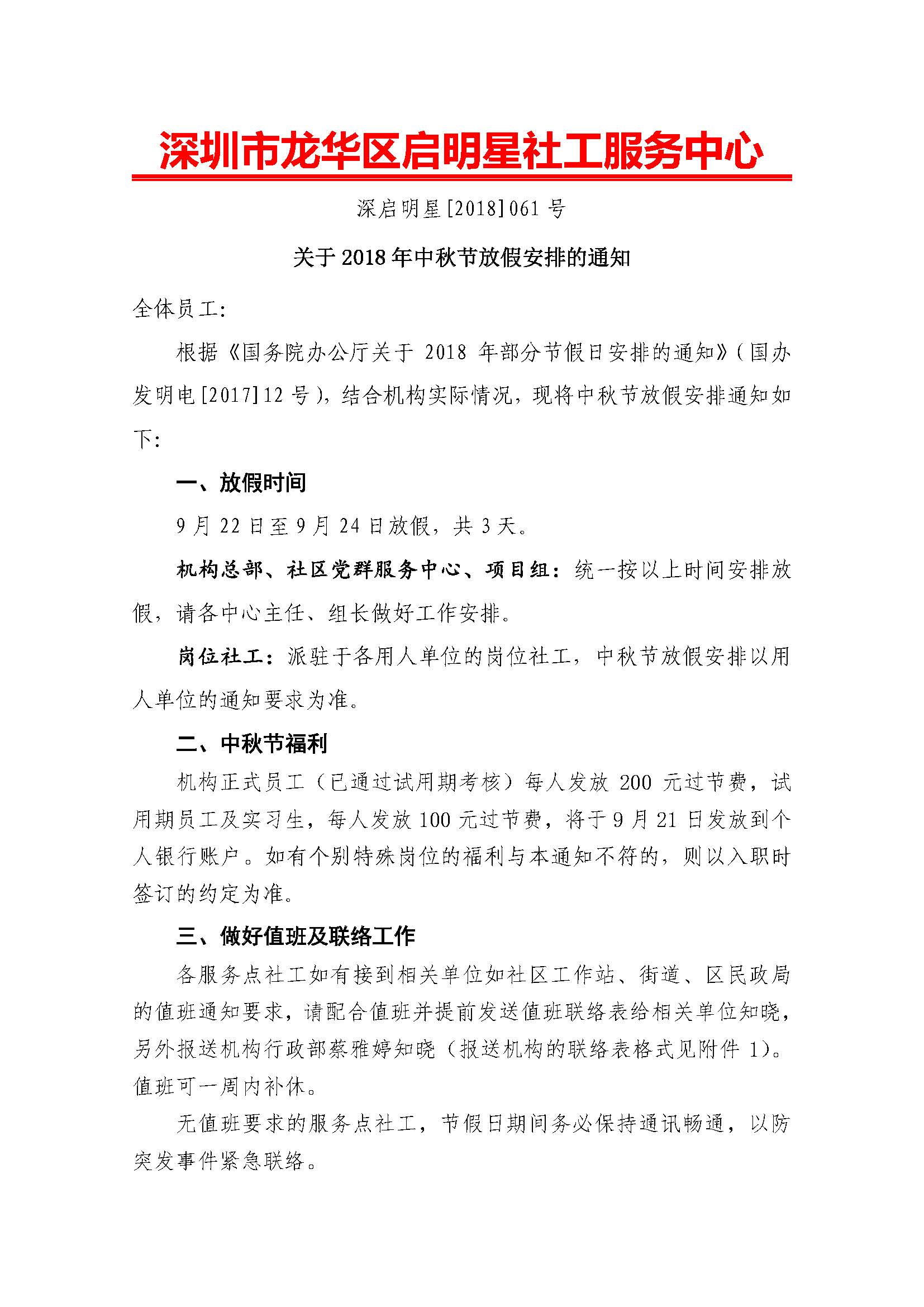 深启明星[2018]061号-中秋节放假通知