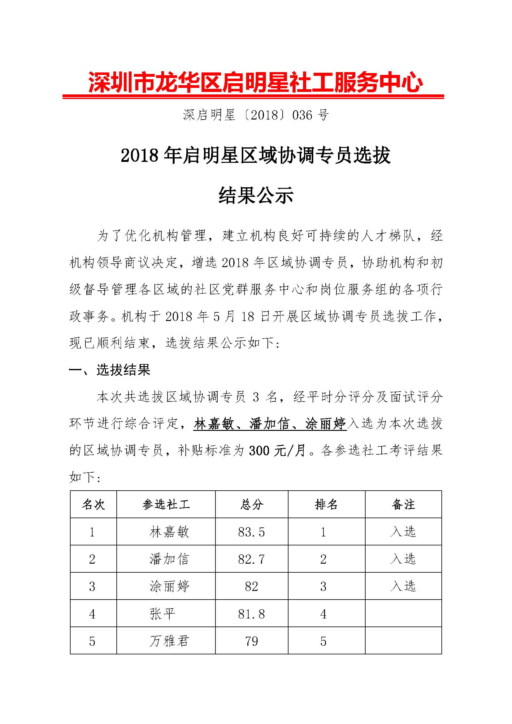 深启明星[2018]036号-启明星区域协调专员选拔结果公示
