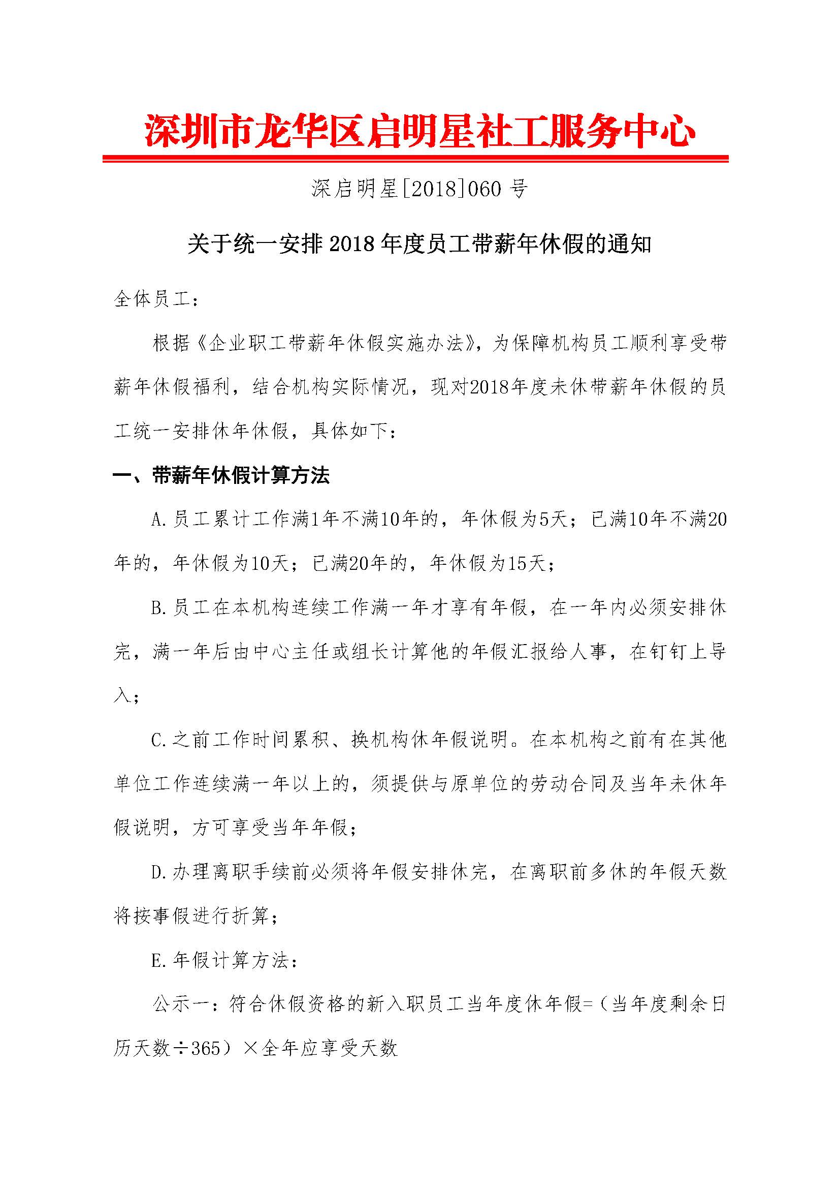深启明星[2018]060号-年休假通知