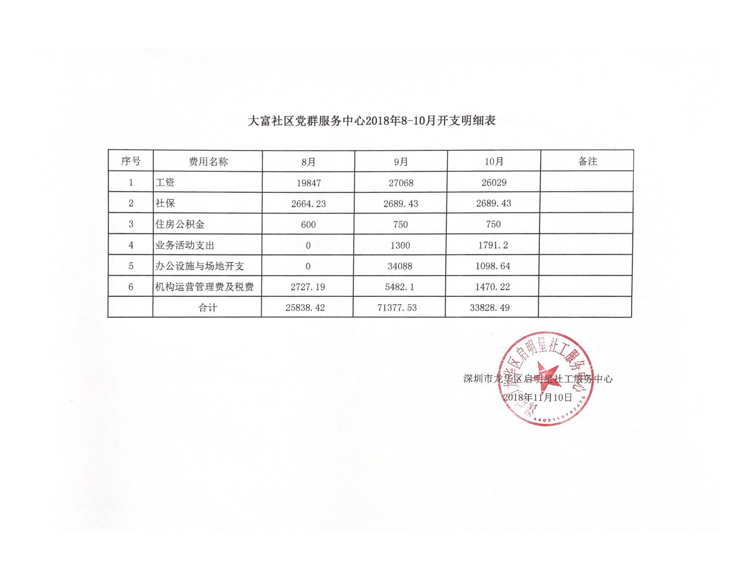 大富社区党群服务中心第一季度财务开支
