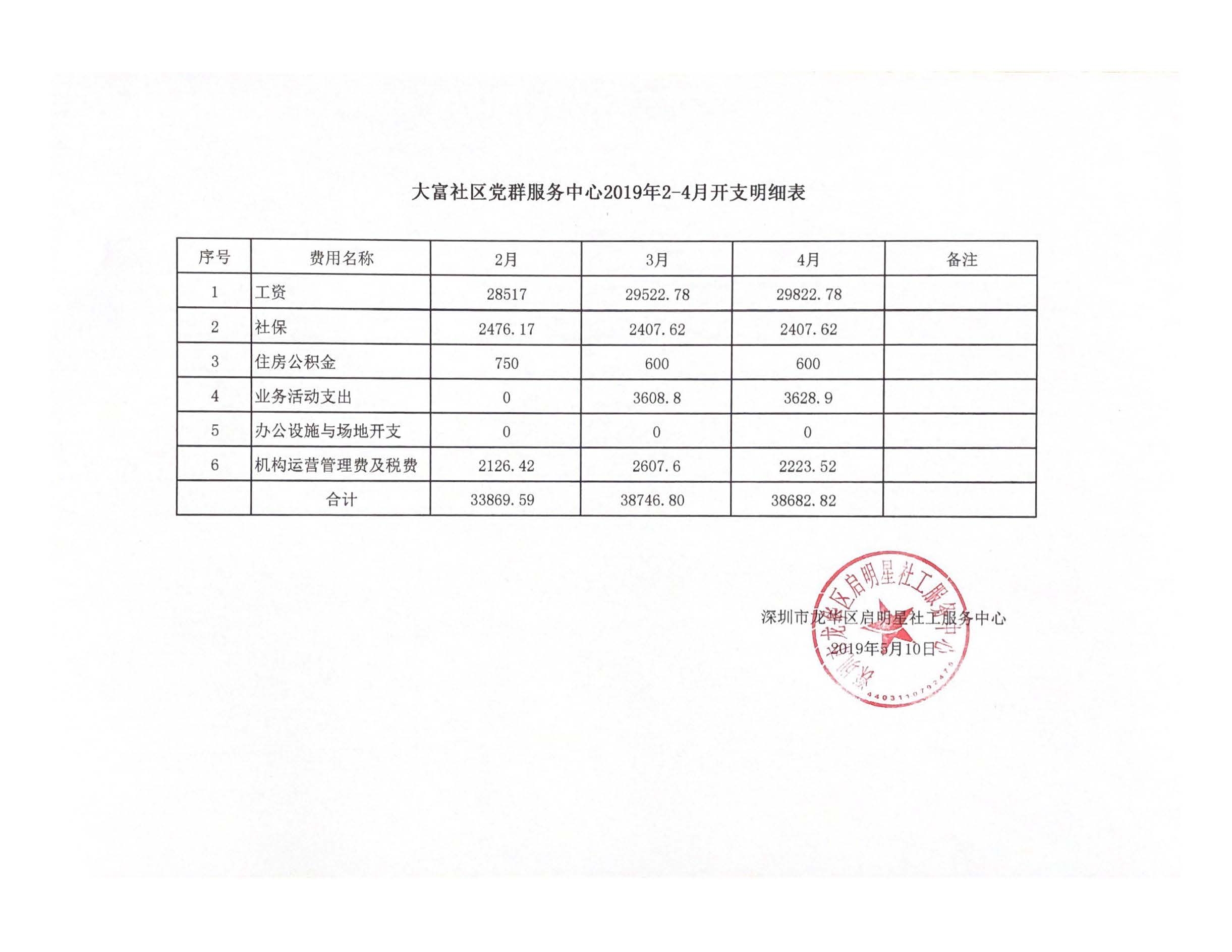 大富社区党群服务中心第三季度财务开支