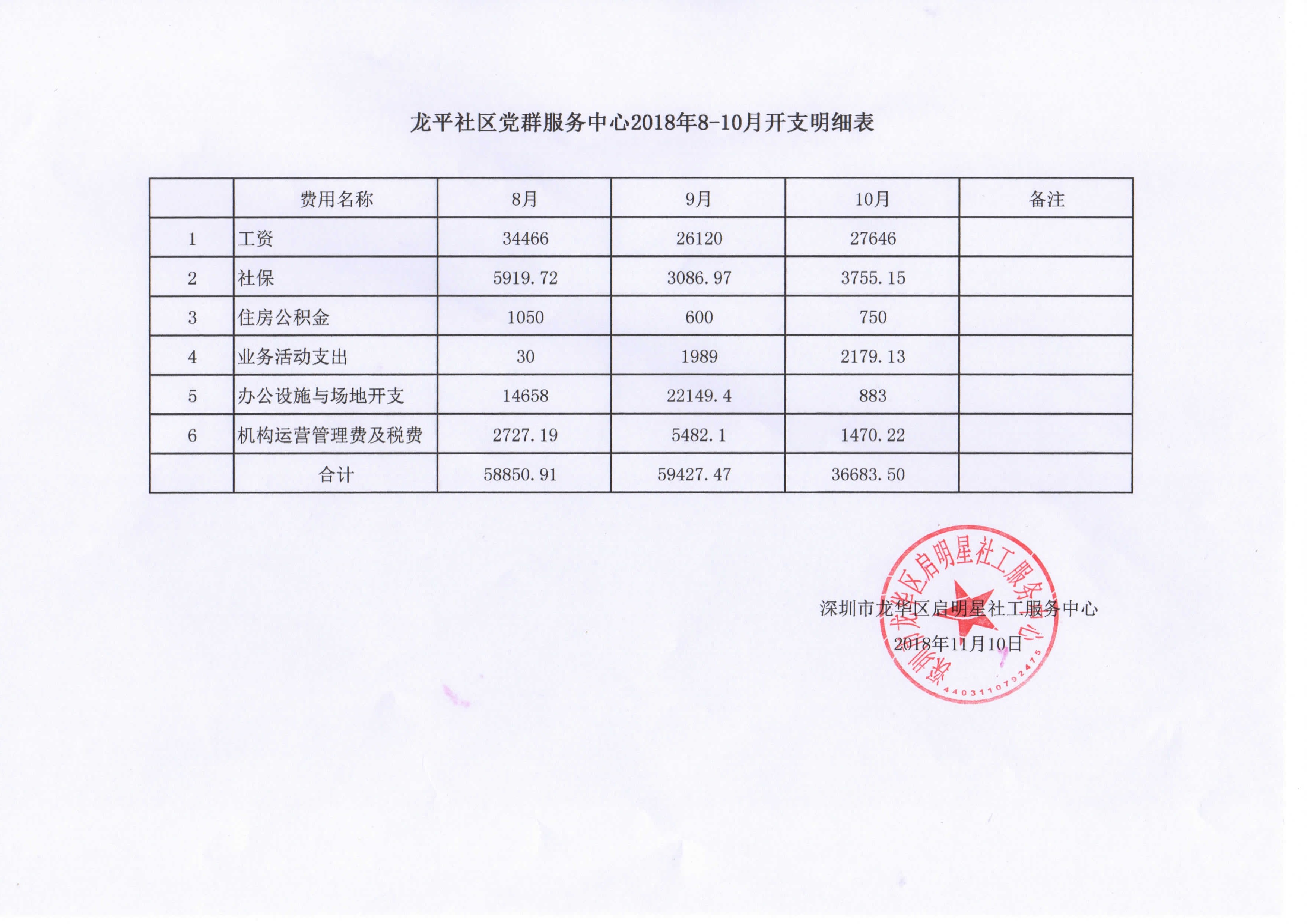 龙平社区党群服务中心第一季度财务开支