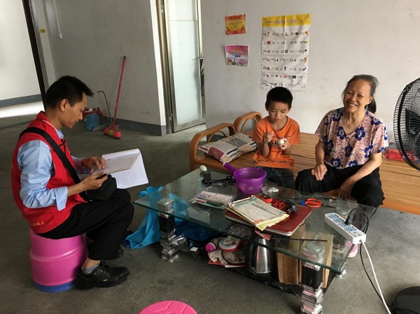 图为社工服务站社工探访留守儿童