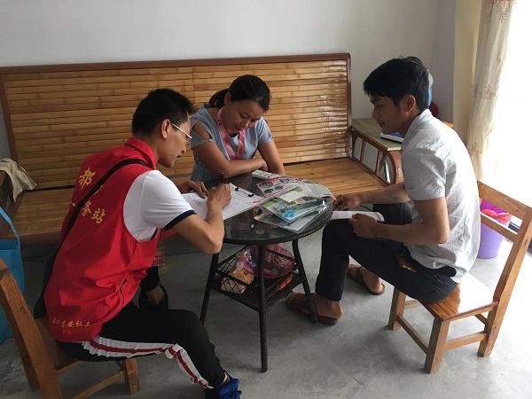 为更好地了解广西河池都安县八仙安置点留守儿童的基本情况和实际需求,暑假伊始,深圳市宝安区扶贫协作驻都安社工服务站的社工对八仙异地扶贫搬迁安置点的留守儿童进行了探访建档和筛查工作,通过与留守儿童及其监护人交谈,了解到他们自身和家庭的基本情况,也对留守儿童的需求和心理状态进行了准确定位,为留守儿童设计针对性服务。社工还为留守儿童送去文具用品和暑假祝福,鼓励他们敞开心扉讲出自己心中的希冀和想法,通过谈心,引导孩子们认真学习,长大后为家乡建设奉献自己的一份力量。据悉,此次暑期关爱留守儿童探访活动计划开展10天,预计服务留守儿童100名。社工为孩子们提供关爱、帮扶、陪伴服务,彰显社工服务的价值与理念,为下一步开展社工服务工作奠定基础。