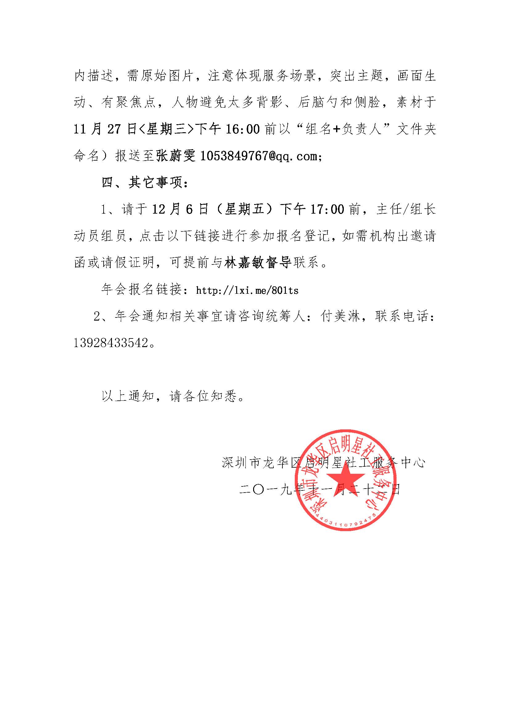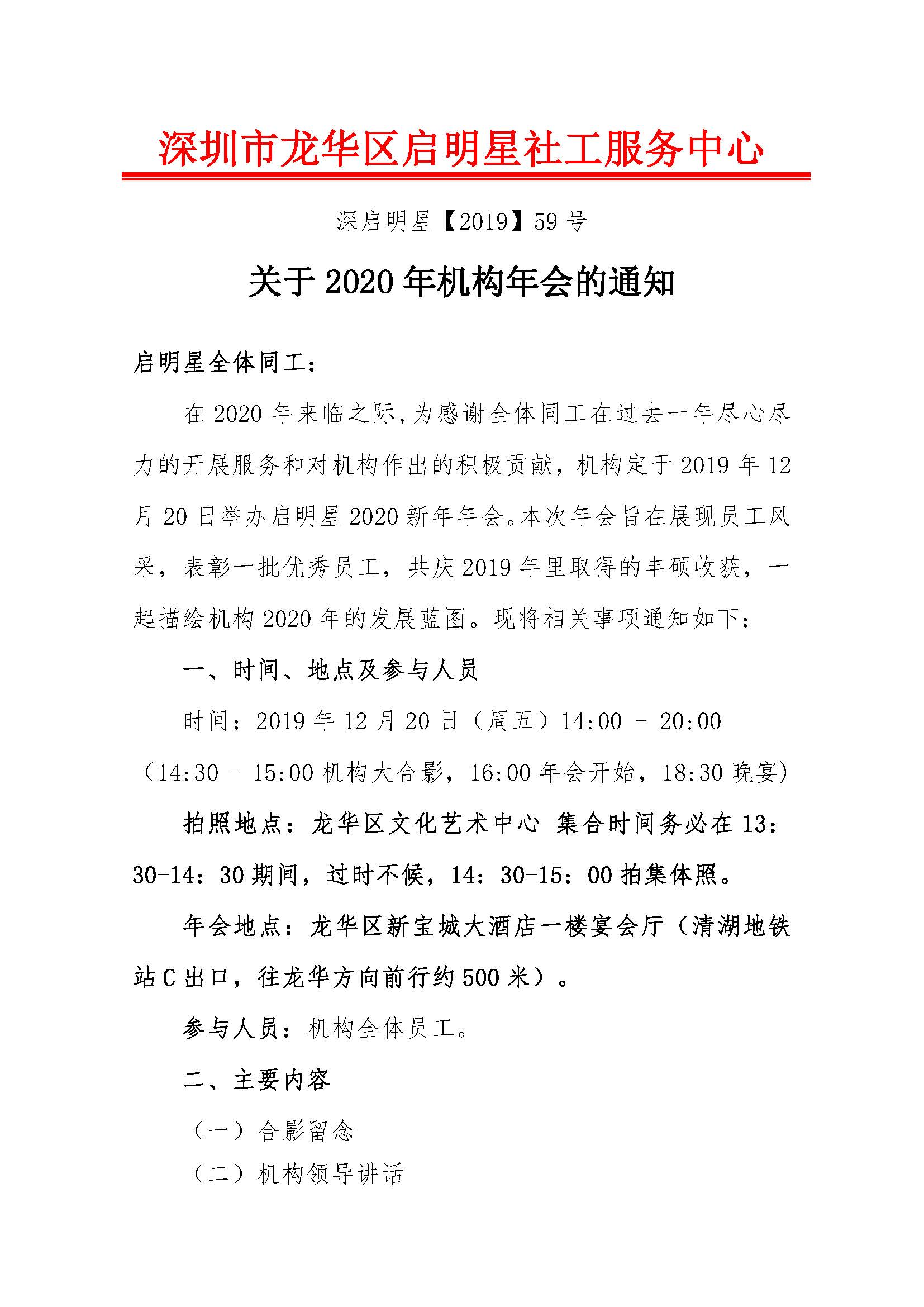 深启明星[2019]059号--关于2020年深圳市龙华区启明星社工服务中心年会通知