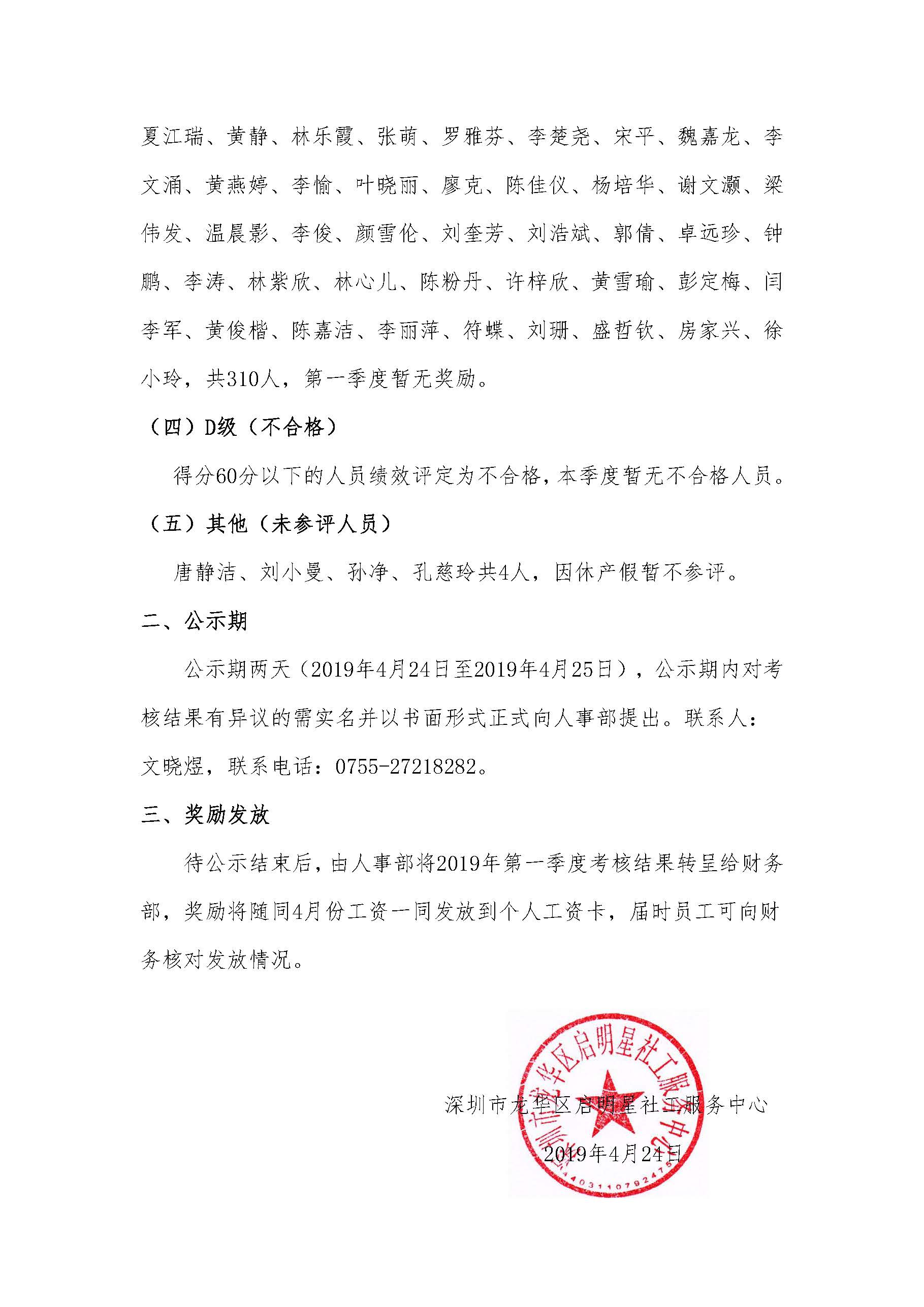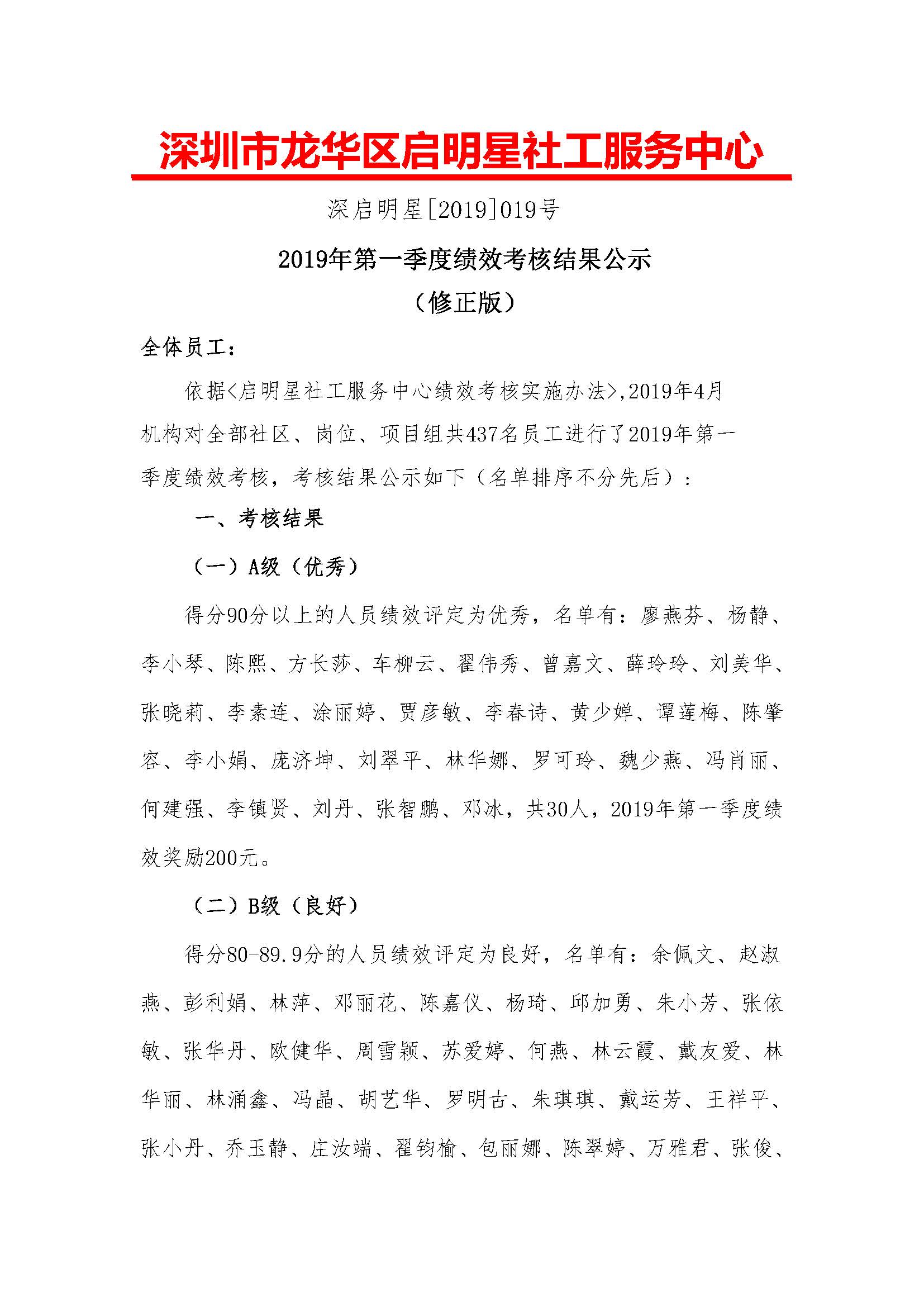 深启明星[2019]019号-2019年第一季度绩效考核结果公示(修正版)