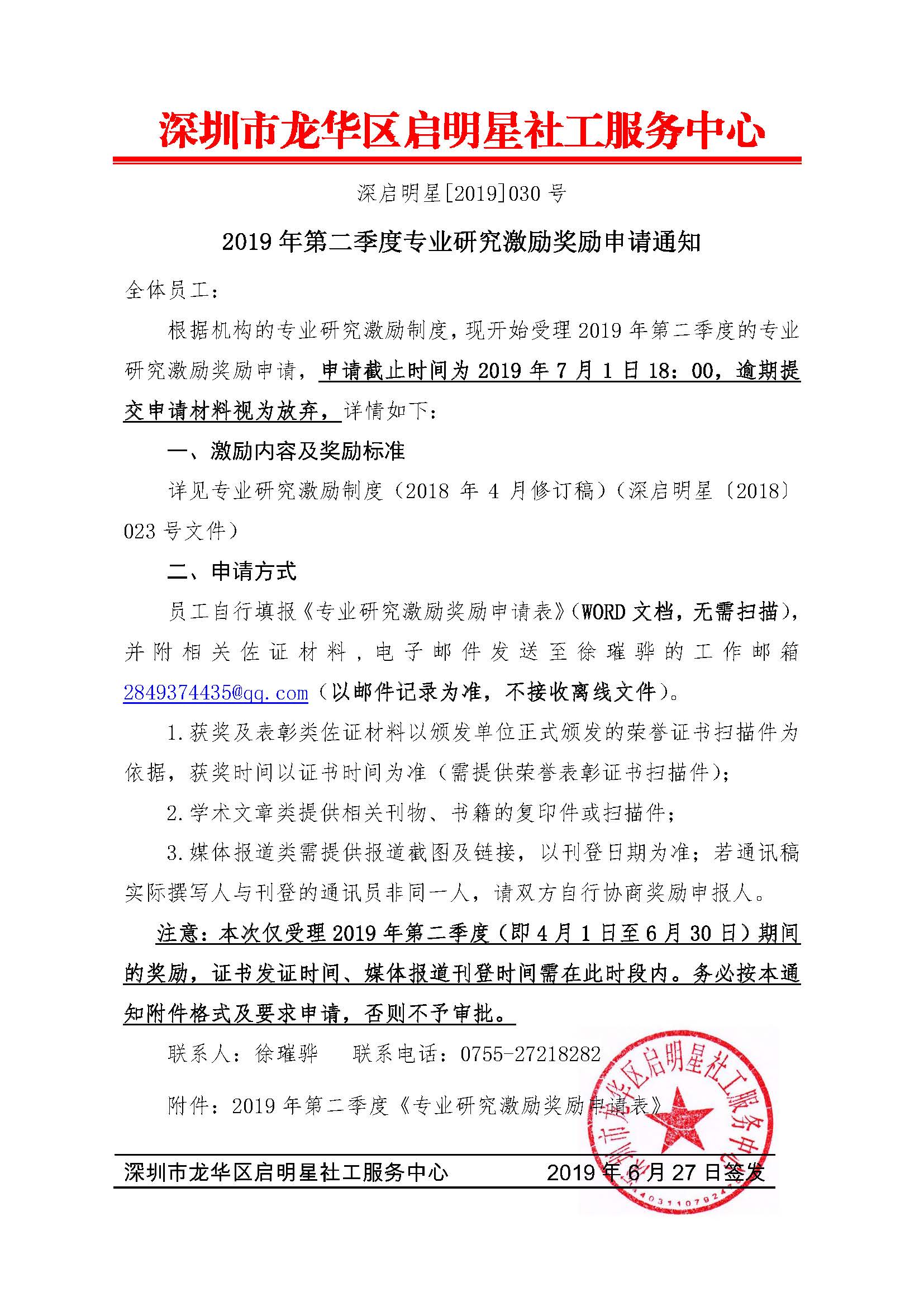 深启明星[2019]030号-2019年第二季度专业研究激励奖励申请通知