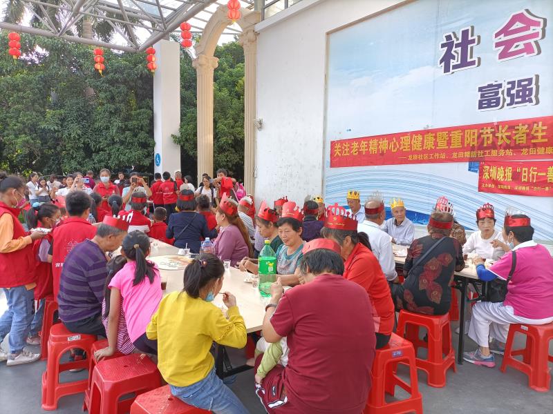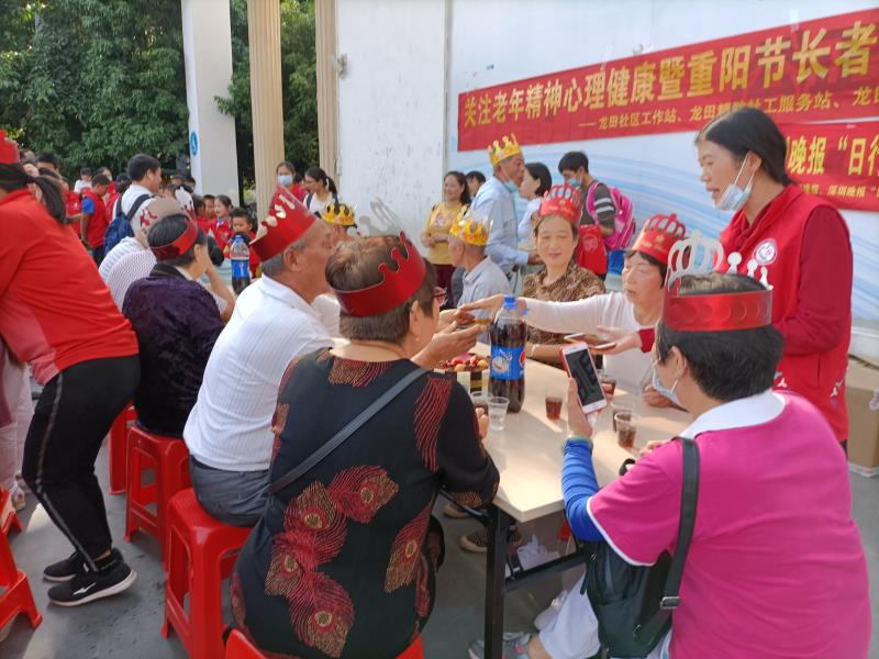 岁岁重阳,今又重阳。为了弘扬尊老、爱老、敬老的良好风尚,让社区“夕阳红”长者的生活充满仪式感,营建浓厚的社区敬老、爱老文化氛围,10月25日重阳节这天,深圳市坪山区驻龙田社区启明星精防社工坪山区日行一善亲子志愿者,在龙田社区荔枝公园举办“关注老年精神心理健康”长者生日,与社区长者共度重阳节。