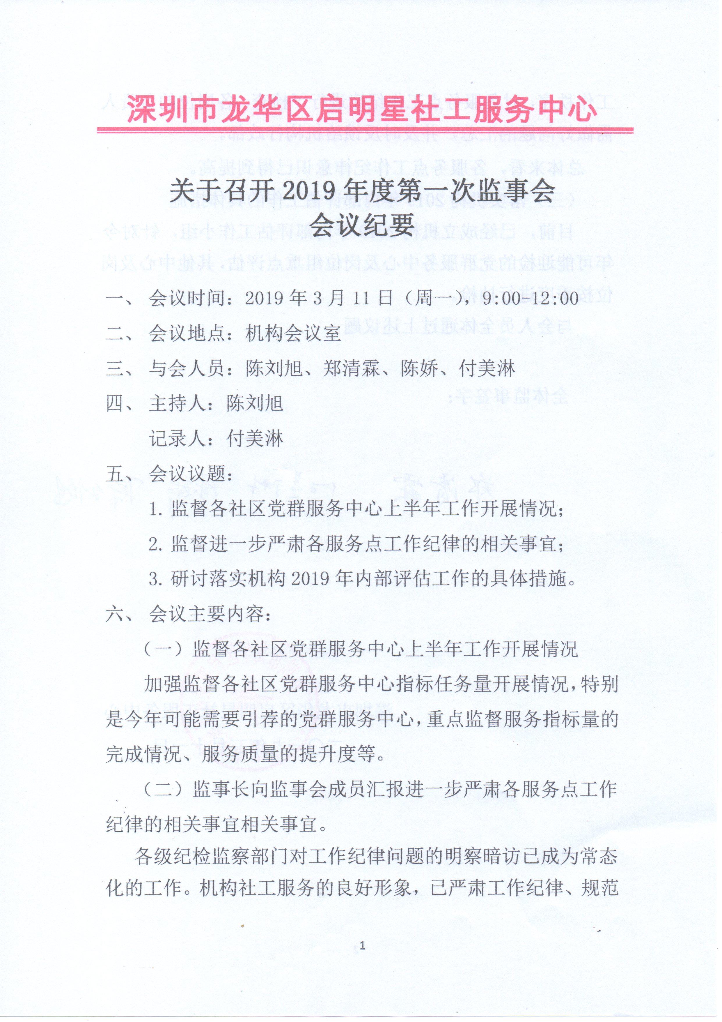 2019年度第一次监事会会议纪要