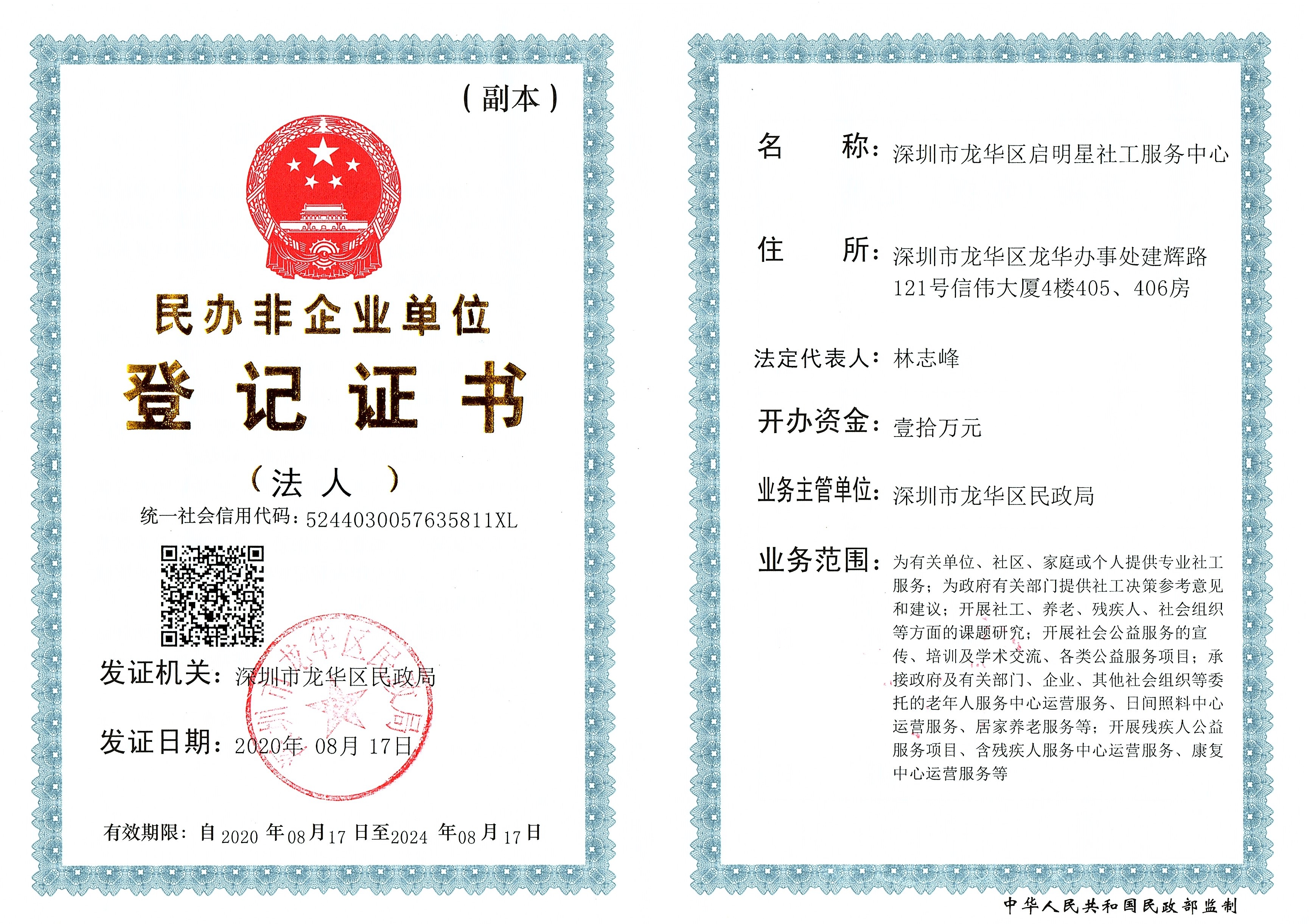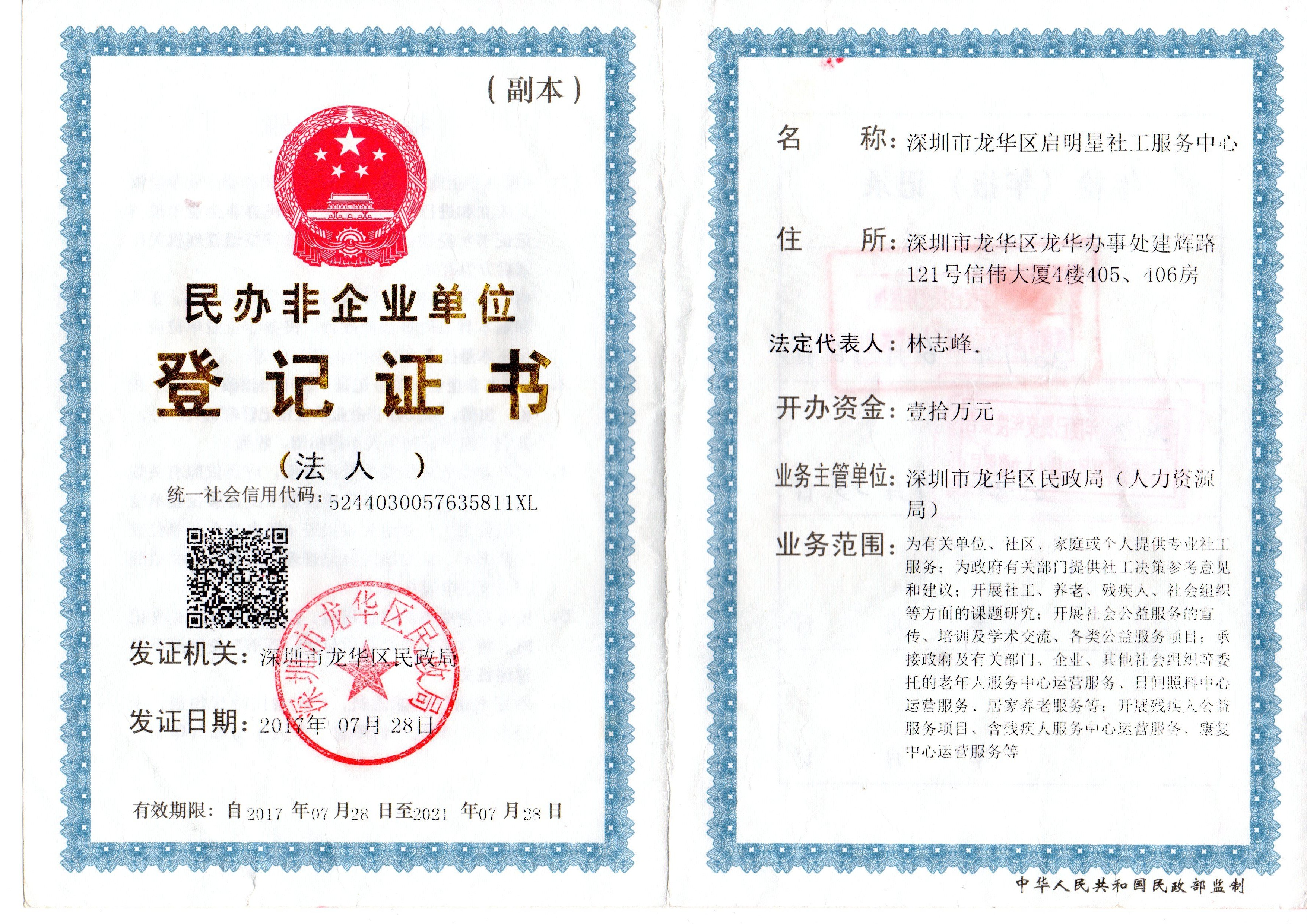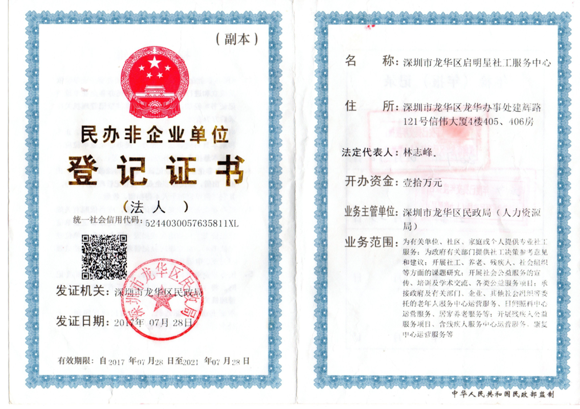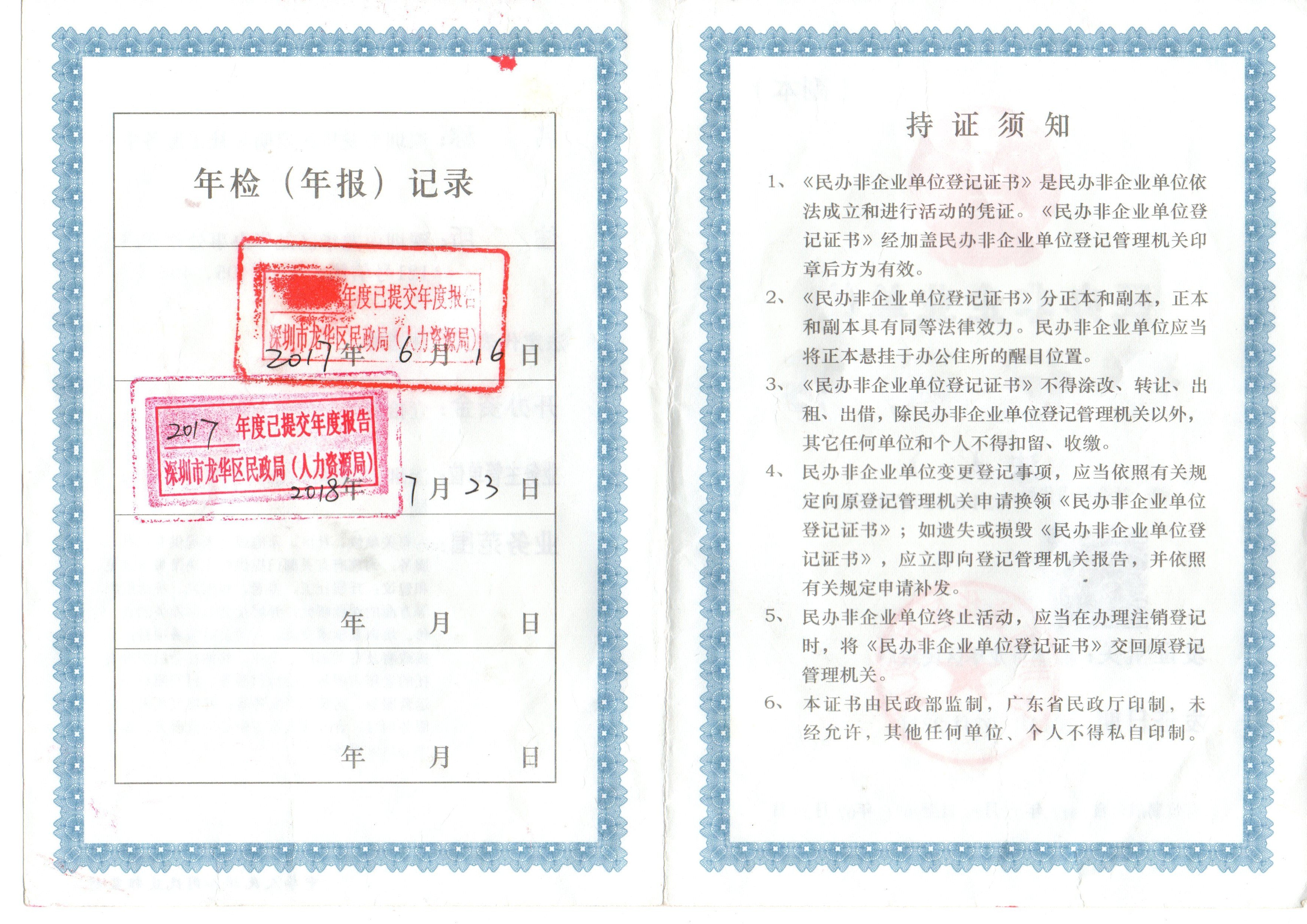 民办非企业登记证书公示