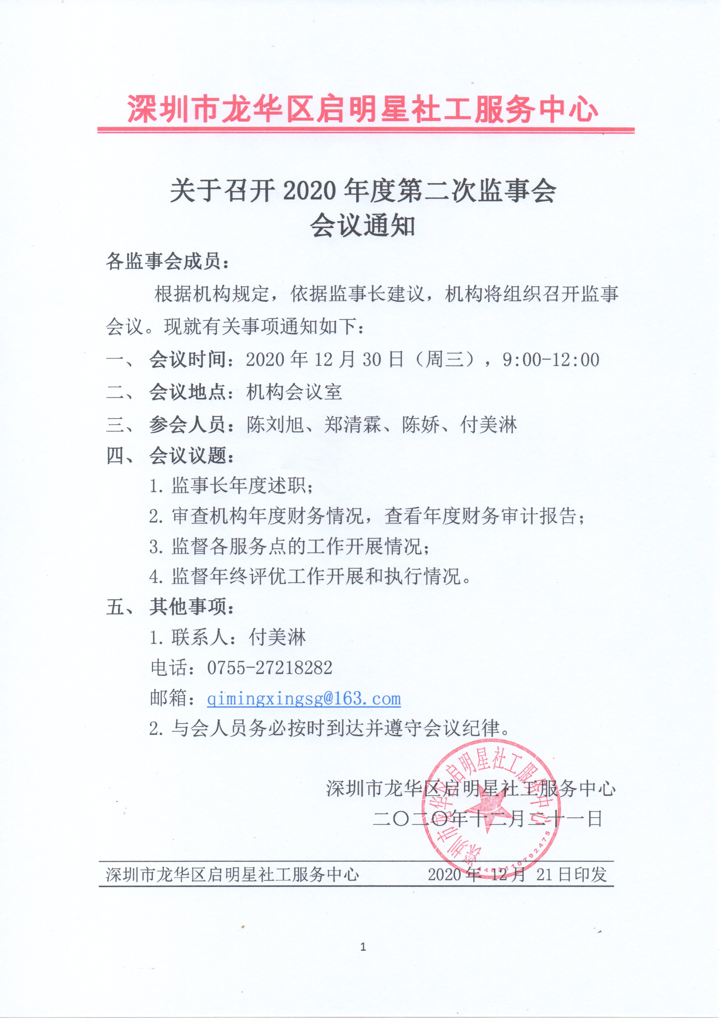 2020年度第二次监事会议通知