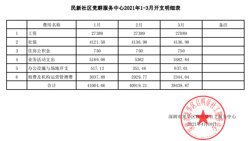 民新社区2021年第一季度财务公示