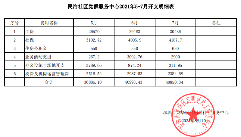 民治社区2021年第二季度财务公示