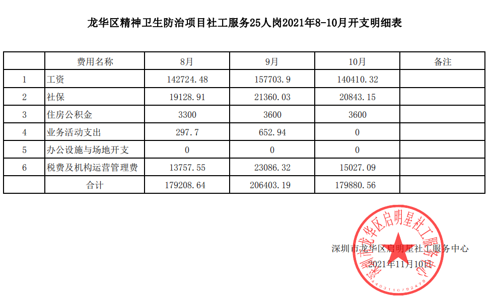 龙华精防2021.8-10开支明细表