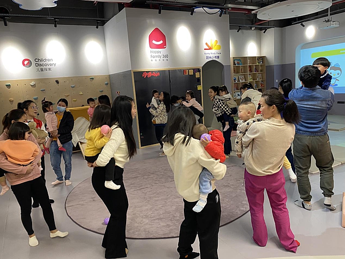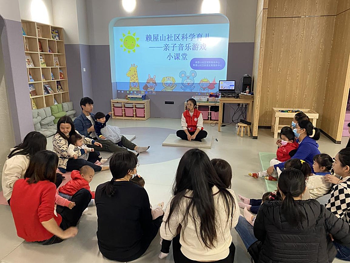 近日,龙华区大浪街道赖屋山社区家庭发展服务中心科学育儿系列小课堂第一堂课开课了,此次课程以亲子音乐游戏为主题,吸引了11户有0至3岁幼儿的家庭参加。